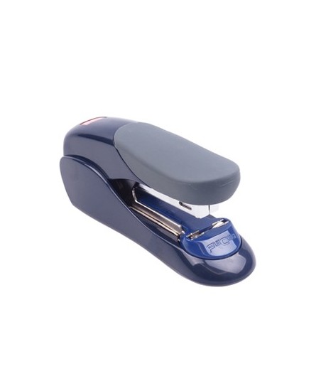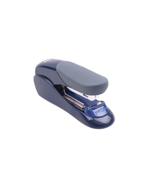 Os papéis são empilhados de maneira organizada e uniforme.¶Design Ergonómico: Pega em borracha para maior conforto ao agrafar¶Saca-Agrafos incorporado¶¶Capacidade de carregamento: 50 agrafos (24/6), 100 agrafos (26/6)¶Agrafa até 30 folhas (64gsm) / 24 folhas (80gsm)¶¶Cor: Azul Escuro ¶Dimensões: L40 x P135 x A60 (mm)