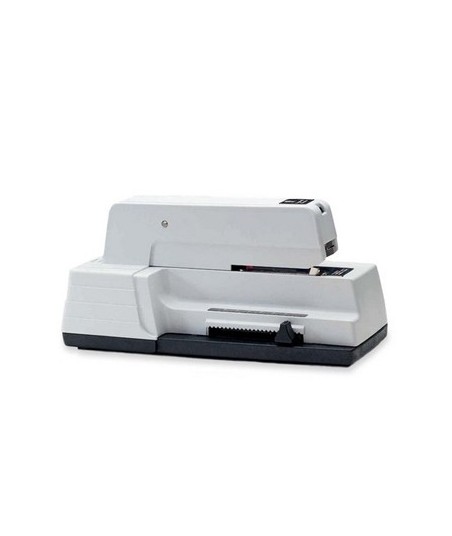 Agrafador elétrico com carregamento frontal. Integra-se bem com outros aparelhos de escritório, por exemplo, impressora, fotocopiadora, etc.¶¶Agrafa até 30 folhas de papel (80 g/m²)¶230V, ficha standard da UE ¶Utiliza agrafos de 66/6 ¶Profundidade de inserção: 60 mm¶¶Cor: Branco/Preto¶Dimensões (L x A x P): 120 x 130 x 250 mm