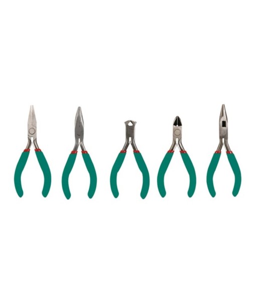 Este conjunto de 5 alicates de precisão é a melhor adição ao seu arsenal de ferramentas. ¶Inclui tudo o que é necessário para várias tarefas de precisão, quer se trate de cortar, dobrar ou agarrar materiais.¶¶Cada conjunto inclui cinco alicates de precisão essenciais, incluindo um cortador lateral, um cortador de extremidades, um alicate de bico redondo, um alicate de bico plano e um alicate de bico longo. ¶¶Materiais de alta qualidade: Os alicates são fabricados em aço cromo-vanádio (CrV) durável, garantindo uma utilização duradoura e resistência ao desgaste.¶¶Design ergonómico: Cada ferramenta foi concebida tendo em conta o conforto e a facilidade de utilização, permitindo-lhe trabalhar sem esforço e com precisão.¶¶Isolamento: Para maior segurança, estes alicates são isolados, o que os torna adequados para trabalhos eléctricos sem risco de choques elétricos.¶¶Multifuncional: Quer esteja a trabalhar em eletrónica, construção de modelos, joalharia ou outros projectos de precisão, estes alicates proporcionam a versatilidade e a precisão de que necessita.¶¶Alicate de bico longo: 125 mm (5")¶Alicate de bico torto: 125 mm (5")¶Alicate de bico chato: 125 mm (5")¶Cortador diagonal: 110 mm (4,5")¶Cortador superior: 110 mm (4,5") ¶¶
