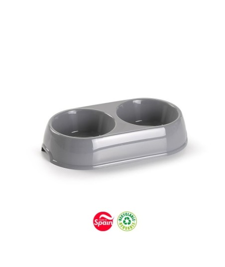 Comedouro Duplo Pequeno¶¶Adequado para gatos ou cães.¶É feito de plástico resistente e é muito fácil de limpar.¶¶Reutilizável¶Reciclável¶¶Cor: Sortido - Entrega Aleatória¶¶Tamanho: 25,5 x 14 x 5 cm