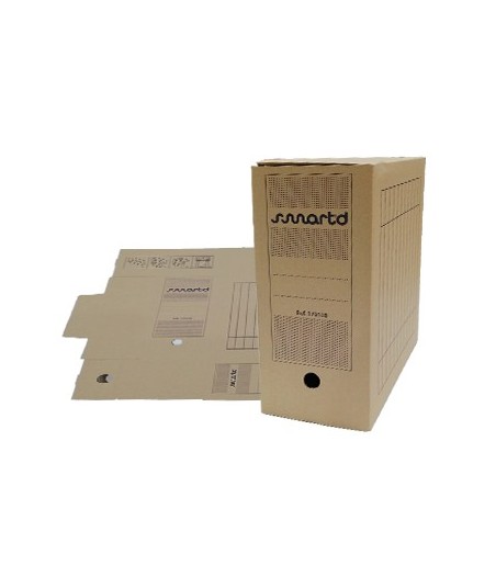 Mantenha o arquivo definitivo organizado e protegido.¶Perfeita para o arquivo de documentos não consultados com frequência, garanta arrumação, organização e proteção de documentação.¶A caixa é muito fácil de montar e desmontar.¶¶Material: Cartão micro canelado revestido a papel kraft¶Desmontável com óculo¶Medidas: Lombada 140 / 340x250mm¶¶