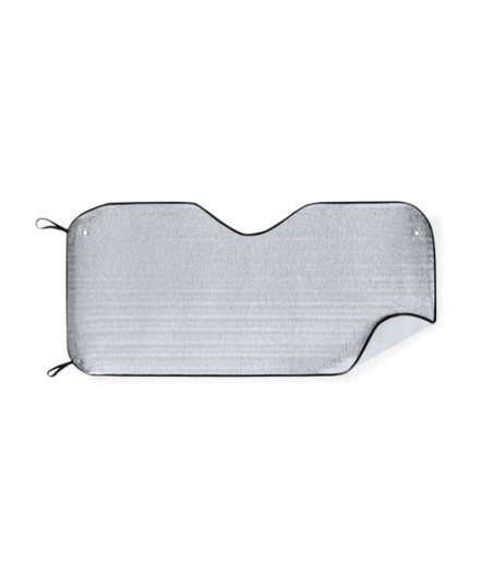 Pára-Sol Fussion¶Protetor solar com lado frontal em alumínio e lado traseiro em espuma. ¶¶Tamanho 130 x 60 cm, com bordas em non-woven e elásticos pretos para dobragem. ¶Inclui 2 argolas metálicas e duas ventosas para ajuste no para-brisa. ¶Alumínio Uma Face¶¶#Possibilidade de Personalização (sob consulta)¶Apresentação desdobrada em chapa para fácil impressão.