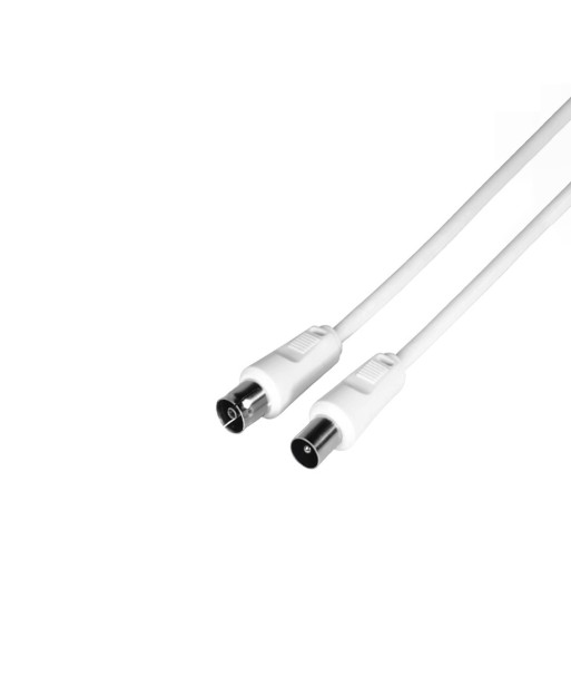 Hama ANT.CA.1,5M WHITE I.P.25¶¶Ficha coaxial - acoplamento coaxial para ligação de, por exemplo, um televisor a uma tomada de antena com tomada coaxial¶Blindagem dupla (malha + película de alumínio)¶Ideal para televisão por cabo  ¶¶Qualidade: Entrada¶Características: Coaxial¶Ligação: Coaxial-Plug, Ligação Coaxial¶¶Características da Proteção: Dupla blindagem¶Impedância: 75 ohm ¶Grau de Proteção: 75 dB¶Modelo: Coaxial-Coaxial¶Tipo: Cabo da antena¶¶Cor: Branco¶Comprimento: 1,5 m¶
