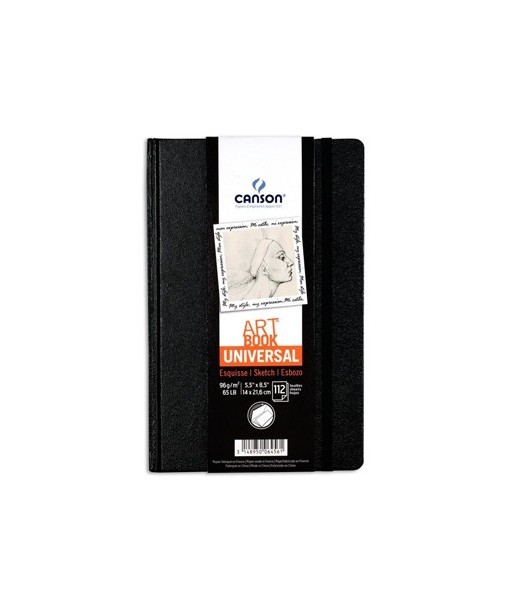 Art Book Universal¶¶Com os cantos arredondados é fácil de transportar e é mais durável. Tem também um útil bolso para guardar papeis soltos. O seu fecho elásticoé inovador:ao ser unido no interior não fica solto mantendo o seu aspecto estético.¶¶Com as suas 112 folhas de papel permanente para desenho Canson® Crob'Art®, os diários gráficos Canson® ArtBook Universal são todo o terreno e duráveis em todos os sentidos.¶¶Papel branco, com pouca gramagem (96 g/m²), ligeiramente esponjoso e textura fina, foi especialmente desenvolvido para estudos e esboços rápidos a lápis, carvão, sanguina. Aguenta lavagens leves e é muito fácil de apagar.¶¶Ideal para: Lápis de grafite, pastel, carvão e canetas de feltro.¶Também adequado para escrever e fazer notas.¶¶Caderno A5 grão fino¶14x21,6 cm¶96gr¶112 Folhas¶¶Livre de ácido¶Não tem quaisquer aditivos óptico branqueadores¶Está em conformidade com a norma ISO 9706¶