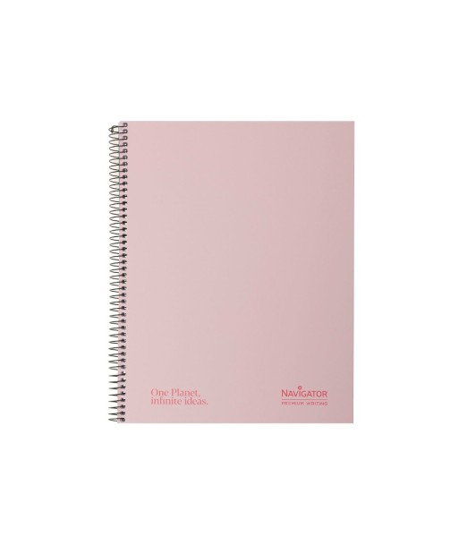 ESCREVE O FUTURO¶Chegou o caderno sustentável que te ajuda a preservar o futuro do planeta enquando escreves o teu.¶¶LEVE NA MOCHILA¶Este caderno sustentável foi produzido com papel de alta qualidade e especialmente pensado para quem procura folhas de papel de maior espessura, mas também menos peso na mochila.¶¶LEVE NO AMBIENTE¶O papel deste caderno é fabricado em Portugal e, graças à fibra do Eucalyptus globulus, utiliza até 5 vezes menos árvores que outros papéis europeus. ¶Cada árvore utilizada produz até 3 vezes mais oxigénio no seu crescimento que outras espécies, deixando mais puro o ar que respiramos. ¶Estas são plantadas e replantadas em florestas renováveis e sustentáveis, assegurando políticas de certificação e conservação da biodiversidade.¶¶Com este caderno estamos a capturar carbono, mas também as tuas memórias. ¶Estima-o e, depois de o ter utilizado até ao fim, por favor coloca-o na reciclagem.¶Quando se trata de proteger o nosso planeta, não somos neutros.¶¶Tamanho do papel: A4¶Número de folhas: 120 folhas¶Gramagem do papel: 80 g/m²¶Interior Quadriculado¶Cor da capa: Rosa Pastel¶¶Capa dura de toque suave: As capas deste caderno são feitas de cartão revestido a papel, com um toque suave e acabamento mate.¶Micro-perfurado e com 4 furos.¶Mecanismo em espiral preto com fecho de bloqueio.¶5 Bandas de cores diferentes.¶¶Certificação florestal FSC.