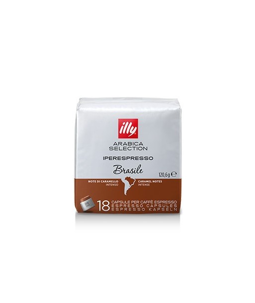 Brasil - Sabor intenso¶¶Café em cápsula Arabica Selection Brasil¶O café cultivado no Brasil é frequentemente usado como base nos blends de café espresso illy por seu intenso sabor e notas de caramelo.¶Este café cultivado de forma sustentável é feito com grãos 100% arábica. O Brasil, maior produtor mundial de café arábica, abriga cinco bilhões de plantas de café, onde estações bem definidas de chuvas e secas criam o clima perfeito para o cultivo de café. A torrefação desta origem é especialmente calibrada para aprimorar as notas aromáticas naturais e o perfil de sabor do café.¶¶Quantidade: Contém 18 cápsulas.