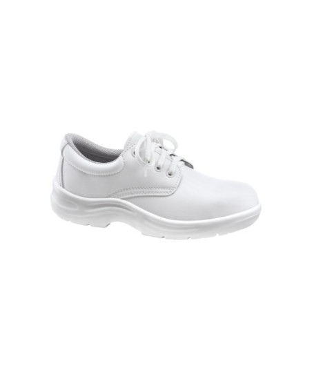 SPARTA S2 SRC¶¶Calçado de proteção branco, adequado para utilização em vários setores, nomeadamente alimentar, hospitalar e químico-farmacêutico. ¶¶A parte superior, com um efeito semelhante ao couro de vaca, é feita de microfibra macia, que oferece um elevado nível de higiene, mesmo na presença de proliferação bacteriana e sujidade, e permite que o calçado seja lavado na máquina. ¶¶É um material respirável, leve e elástico, que contribui para tornar o sapato muito confortável de usar. ¶A sola de densidade única, leve e flexível, garante uma excelente aderência e foi totalmente testada de acordo com as normas de resistência ao deslizamento SRC.¶¶Forro respirável, hidrofílico e que absorve a humidade¶Sola interior amovível, respirável e anti-estática¶Sola de poliuretano de densidade única¶Biqueira de aço¶Fecho com cordões¶Lavável à máquina¶Excelente relação qualidade/preço¶¶Categoria de proteção: S2¶Resistência ao deslizamento: SRC¶¶Tamanho: 45¶Cor: Branco
