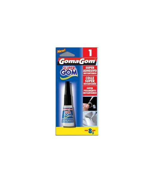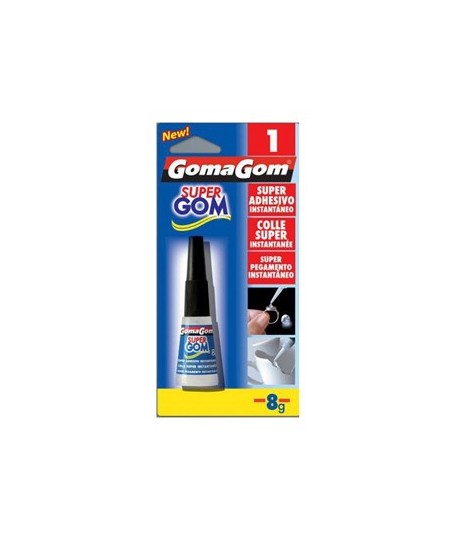 Super Cola GomaGom instantânea de 8g transparente.¶¶Adequada para plásticos, cerâmicas, borrachas, madeiras, metais, vidro, entre outros materiais.