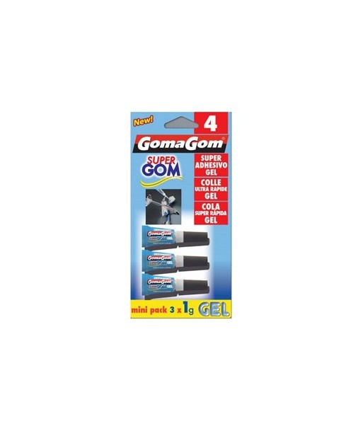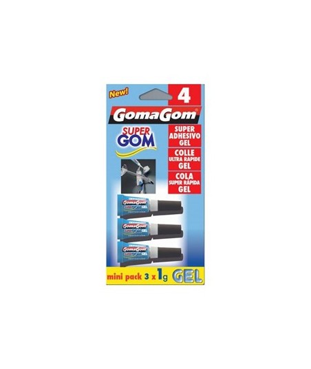 Mini pack de 3x1g de super cola gel GomaGom instantânea.¶¶Adequada para plásticos, cerâmicas, borrachas, madeiras, metais, vidro, entre outros materiais.