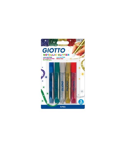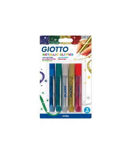 Dá brilho às tuas ideias com as colas Giotto Decor Glitter. ¶¶Dedicado aos artistas deslumbrantes e às suas impressionantes criações, a cola Giotto Glitter brilhará para sempre! ¶Ideal para criar efeitos brilhantes, esta cola glitter pode-se usar como esferográfica normal para decorar em papel, cartão, madeira, tecido e em muitos outros materiais.¶Prática, divertida e com diferentes estilos. seca aproximadamente em 30 minutos.¶¶Formato Blister com 5 unidades, Tubos unitários de 10,5 ml.¶Cor: Metálico¶¶Idade recomendada:+3 anos¶¶