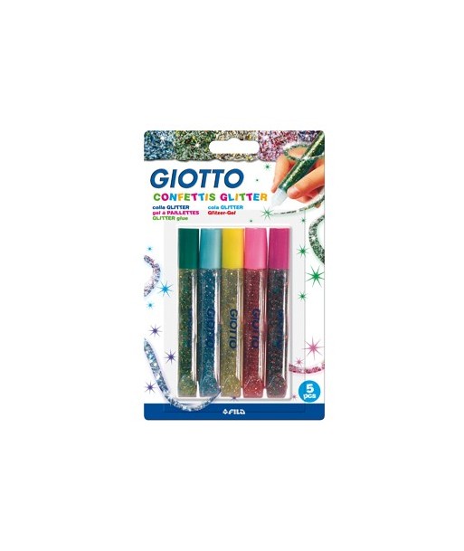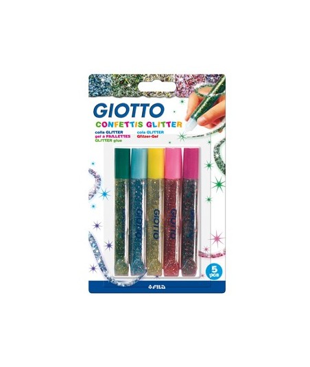 Dá brilho às tuas ideias com as colas Giotto Decor Glitter. ¶¶Dedicado aos artistas deslumbrantes e às suas impressionantes criações, a cola Giotto Glitter brilhará para sempre! ¶Ideal para criar efeitos brilhantes, esta cola glitter pode-se usar como esferográfica normal para decorar em papel, cartão, madeira, tecido e em muitos outros materiais.¶Prática, divertida e com diferentes estilos. seca aproximadamente em 30 minutos.¶¶Formato Blister com 5 unidades, Tubos unitários de 10,5 ml.¶Cor: Confettis¶¶Idade recomendada:+3 anos¶¶