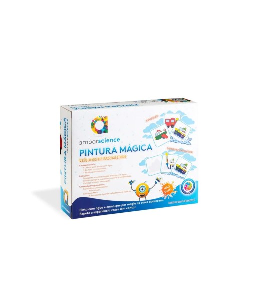 Acreditamos que brincar é a melhor forma de as crianças explorarem e conhecerem o mundo que as rodeia, por isso criamos brinquedos educativos que potenciam o seu desenvolvimento cognitivo, social e emocional, de uma forma divertida e lúdica.¶¶Com os brinquedos AMBARSCIENCE, assumimos o compromisso de proporcionar momentos inesquecíveis de descoberta, felicidade e de aprendizagem aos mais pequenos. Comprometermo-nos com o desenvolvimento das novas gerações é também contribuir para a preservação do meio que as rodeia. Assim, cada vez mais, os nossos brinquedos são produzidos com materiais amigos do ambiente e certificação FSCTM.¶¶Pintura Mágica - Veículos de passageiros¶Idade recomendada: + 3 anos¶Competências desenvolvidas: Motricidade Fina, Criatividade, Perceção da Cor                   ¶Um avião, um comboio e um barco, que de um lado são desenhos para colorir com água e do outro são puzzles para construir.¶Ao pintar com água o desenho torna-se colorido, depois de secar fica novamente sem cor. Podes repetir a atividade inúmeras vezes! ¶¶Inclui: ¶1 caneta para pintar com água¶3 cartões¶3 desenhos e manual educativo com curiosidades.