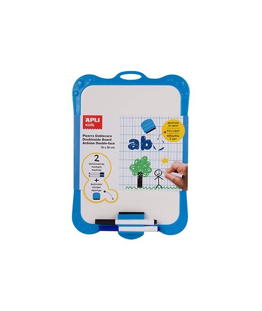 Quadro para marcadores de tamanho 180 x 280 mm. Quadro branco frente e verso: um lado branco e outro quadriculado.¶Excelente qualidade tanto na escrita como no apagamento, oferecendo a possibilidade de apagar mesmo após vários dias.¶Ideal para uso em escolas e residências: na prática de desportos, para resolver problemas em aula, para jogar em casa, etc.      ¶¶Inclui 2 marcadores de quadro branco (azul e preto) e uma borracha, ambos fixados no mesmo quadro branco. Tem um furo superior para pendurá-lo, se desejar.                                                                                                                                                                                                                                                     ¶Medidas: 180x280mm¶Cor: Branco¶¶Avisos de Segurança¶Use apenas marcadores adequados para quadros brancos para garantir o bom funcionamento do produto.¶Se não tiver certeza sobre a aplicação da placa na superfície escolhida, corte um pequeno pedaço e cole-o em uma parte imperceptível da superfície. Deixe atuar por 2-3 dias e retire a peça para ver o resultado.¶