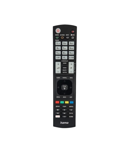 Telecomando universal de substituição por infravermelhos 1:1 para televisores LG com as funções do original.¶¶Função de programação¶Comando à distância programável: com o modo de programação, é fácil transferir as funções do comando original para o comando universal, mantendo tudo aquilo que é importante para si¶¶Acesso rápido graças ao comando inteligente¶Tecla inteligente para acesso rápido: 1 tecla Stream para selecionar o menu da aplicação, para que possa aceder mais depressa aos serviços de streaming e afins¶¶Teclas luminescentes¶Teclas auto-iluminadas: O teclado numérico e os botões principais são luminescentes - por isso é muito fácil de utilizar, mesmo numa sala escura, sem ter de acender a luz primeiro¶¶Modo simplificado¶Função Easy-Mode: A gama de funções do telecomando pode ser limitada para que as definições do televisor não sejam alteradas acidentalmente, ideal, por exemplo, em hotéis ou para idosos¶¶Transmissão de sinal: Infravermelhos¶Alcance: 10 m ¶Nº de teclas: 52 ¶¶Número de pilhas: 2¶Tipo de pilha: AAA Micro¶¶Cor: Preto¶Comprimento x largura x profundidade): 21,6 x 4,8 x 2,4 cm¶