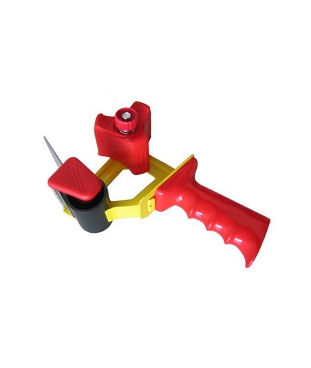 Com protecção em PP, rolo de borracha  para melhor deslizamento da fita. ¶Tamanho: 250x145x70mm. ¶Para fitas até 50mm  de largura