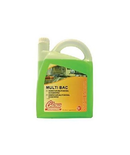 Desinfetante multifuncional de secagem rápida recomendado para desinfeção de superfícies entre tarefas. Cumpre os requisitos HACCP.¶¶Está especialmente formulado para aplicar diretamente em superfícies quando é impossível ou indesejável usar grandes quantidades de produtos de base aquosa.¶É eficaz contra as mais variadas formas vegetativas de microrganismos.¶Na Indústria agroalimentar e restauração está especialmente indicado para superfícies em contacto direto com os alimentos, dispensando os processos de enxaguamento, não deixando resíduos.¶¶MULTI BAC passou a NORMA EN1276 (atividade bactericida), puro, em condições de sujidade com 5 minutos de tempo de contacto.¶MULTI BAC passou a NORMA EN1275 (atividade fungicida), puro, em condições de sujidade com 5 minutos de tempo de contacto.¶¶1. Aplicar o produto puro por pulverização.¶2. Deixar atuar 5 minutos.¶3. Passar com um pano de limpeza até à completa evaporação do produto.¶¶Estado físico a 20ºC: Líquido  ¶Aspeto: Transparente ¶Cor: Verde ¶Odor: Característico ¶pH: 7,0 - 8,0¶Densidade relativa a 20ºC: 0,94 ¶Propriedade de solubilidade: Solúvel em água