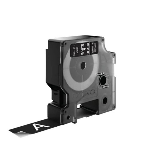 Fita Dymo 45811 D1¶19mm x 7m¶Texto branco em fita preta¶Adequado para sistemas LabelManager e LabelPoint¶¶D1 Labelmaker:	LabelManager 300, LabelManager 350, LabelManager 350D, LabelManager 360D, LabelManager 400, LabelManager 420P, LabelManager 450, LabelManager 450D, LabelManager 500TS, LabelManager PC, LabelManager PC 2, LabelManager Wireless PnP, LabelPoint 300, LabelPoint 350, LabelWriter 400 Duo, LabelWriter 450 Duo, Etiquetadora Móvel
