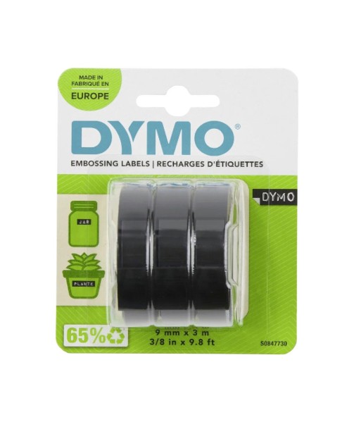 Independentemente de serem utilizadas em áreas internas ou externas, pode confiar na durabilidade das etiquetas plásticas em relevo da DYMO.¶Estas etiquetas aderem a qualquer superfície lisa e limpa, sendo a variedade de cores ideal para criar efeitos visuais adicionais e facilitar a comunicação de forma simples e eficaz.¶¶Inclui 3 fitas¶Dimensões: 9 mm x 3 m¶Cor: Preto¶Compatível: Dymo Omega e Junior