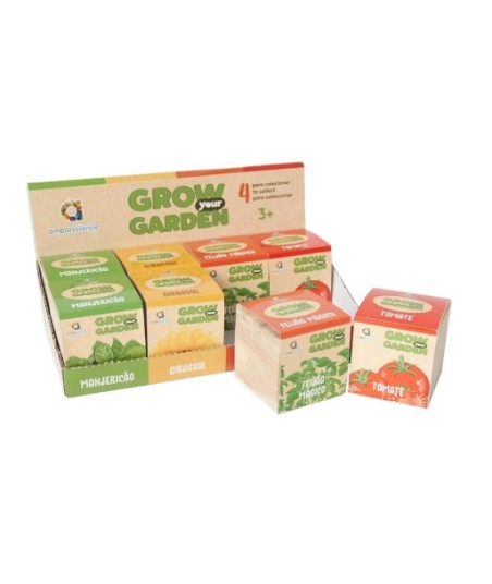 Expositor -  Grow your Garden. Ideal para Pontos de Venda !!¶¶Acreditamos que brincar é a melhor forma de as crianças explorarem e conhecerem o mundo que as rodeia, por isso criamos brinquedos educativos que potenciam o seu desenvolvimento cognitivo, social e emocional, de uma forma divertida e lúdica.¶Com os brinquedos AMBARSCIENCE, assumimos o compromisso de proporcionar momentos inesquecíveis de descoberta, felicidade e de aprendizagem aos mais pequenos. ¶Comprometermo-nos com o desenvolvimento das novas gerações é também contribuir para a preservação do meio que as rodeia. ¶Assim, cada vez mais, os nossos brinquedos são produzidos com materiais amigos do ambiente e certificação FSCTM.¶¶Competências desenvolvidas: Conhecimento Científico, Consciência Ambiental, Relacionamento Interpessoal                                                                                                                                                                                                                                                              ¶Cultiva o teu jardim em casa com a coleção Grow your Garden da ambarscience. ¶Além de fomentarem a consciência ambiental, estes cubos de madeira são 100% biodegradáveis e, por isso, são o presente ecológico perfeito! ¶¶Expositor com 8 unidades:¶2x Cubos Feijão Mágico¶2x Cubos Girassol¶2x Cubos Manjericão¶2x Cubos Tomate¶¶Idade recomendada: + 3 anos