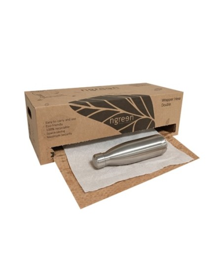 O Wrapper Hexa Double é uma alternativa 100% ecológica ao enchimento de plástico e é a solução perfeita para embalar e proteger os produtos contra danos durante o transporte ou a expedição.¶¶Especialmente indicado para proteger os produtos mais frágeis, pois o papel suave utilizado para intercalar evita danos e riscos indesejados, conferindo uma proteção extra aos seus artigos mais sensíveis. ¶Solução específica para necessidades de embalagem de baixo volume. ¶Os papéis utilizados no Wrapper Hexa Double são reciclados, 100% recicláveis e certificados com o rótulo ecológico FSC®.¶¶Porque é que o Wrapper Hexa Double é uma ótima solução de embalagem?¶¶Solução ecológica e económica pronta a usar,¶Alternativa ecológica ao plástico bolha,¶Caixa conversora para 1 ou 2 rolos com sistema tensor incorporado,¶Segurança máxima, sem lâminas de metal,¶100% biodegradável e reciclável,¶Compacto, pode ser colocado em qualquer sítio,¶Útil e indicado para proteger produtos em diversas aplicações,¶Não necessita de eletricidade, funcionamento manual,¶Fácil de transportar e manusear,¶Permite rasgar à medida e embrulhar de forma rápida e simples,¶Processo de redução de poeiras durante a transformação do papel,¶Flexível e fácil de utilizar, indicado para embrulhar todo o tipo de objetos, mesmo os mais frágeis.¶¶Especificações¶Dimensões: 58 x 32 x 22 cm¶Peso: aprox. 6 kg¶Número de rolos no interior: 2 rolo¶Qualidade do papel: papel favo abelha 80 gr/m² + papel sulfito 20 gr/m²¶Largura do rolo (papel sulfito): 500 mm¶Largura do rolo (papel sulfito): 385 mm¶Comprimento do rolo (papel favo): 100 m¶Comprimento do rolo (papel sulfito): 150 m¶Cor do papel: castanho natural (favo abelha) e branco (papel sulfito)¶¶Instruções de utilização:¶1 - Coloque a caixa no local onde pretende embalar os seus produtos.¶2 - Destaque a tira frontal e a aba superior pelo picotado.¶3 - Retire as películas da fita adesiva que se encontram no fundo da caixa e pressione para baixo para que a fita adesiva adira à superfície e a caixa não se desloque involuntariamente.¶4 - Através da aba superior, retirar o adesivo do(s) rolo(s) de papel e rodar o(s) rolo(s) até o papel sair pela ranhura frontal.¶5 - Puxar os dois papéis em simultâneo pela ranhura frontal de acordo com o tamanho do objeto que pretende embrulhar.¶6 - Para cortar, destacar manualmente os dois papéis em simultâneo de acordo com o tamanho pretendido.¶7 - Reutilizar a caixa sempre que possível.