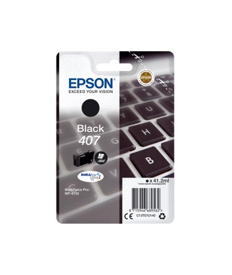 Tinteiro Epson 407 Preto C13T07U140¶41,2ml - 2600 Pág¶¶Impressora Compatível:¶¶Epson WorkForce Pro WF-4745 DTWF