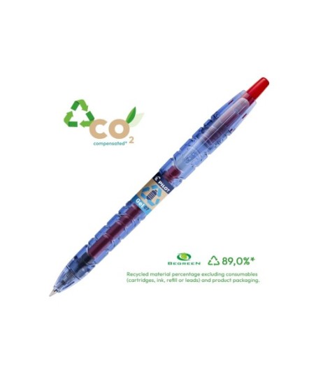 Produto BEGREEN. Da garrafa de plástico para a caneta!! É este o mote.¶Quando uma garrafa de água se torna no corpo de uma esferográfica retrátil :)¶89% do material utilizado é feito com plástico reciclado para reduzir o impacto ambiental. ¶Inclui na sua composição resíduos de plástico recuperados das praias.¶¶Esta caneta é composta por 89,8%* de garrafas de plástico recicladas, das quais 2,5%** são plásticos reciclados dos oceanos, uma forma inovadora de participar na luta contra a poluição marinha.¶Um pequeno gesto pode fazer uma diferença significativa na nossa luta contra as alterações climáticas!¶¶Eficácia e conforto de escrita graças à fluidez e suavidade únicas da tinta de gel Pilot.¶Produto recarregável mais económico e respeitoso do meio ambiente.¶Ponta retrátil: uma caneta pronta num clique, sem tampa perdida!¶¶Tinta de gel¶Cor escrita Vermelho¶Ponta média¶Diâmetro 0.7mm¶Traço 0.4mm¶Recarregável Sim¶¶*Material reciclado principalmente de garrafas plásticas (excluindo peças substituíveis)¶** Material plástico rígido recuperado do oceano, praias, rios, lagos, margens de rios e cursos d'água.