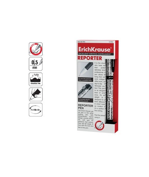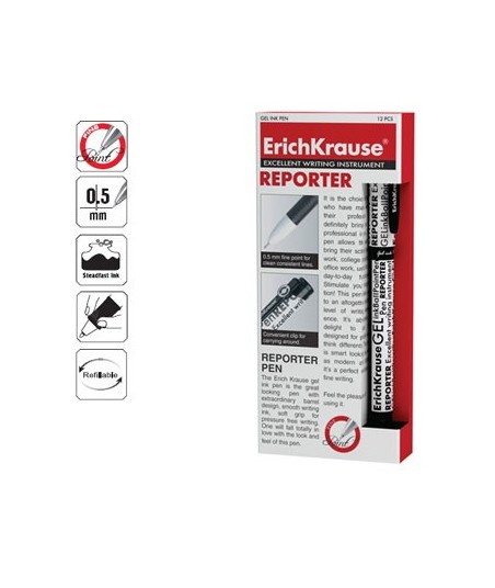 Esferográfica Gel EK Reporter Preto 0,5mm 12un