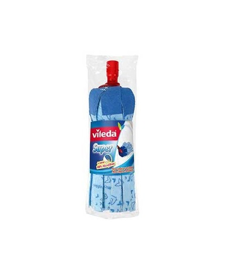 A única esfregona de tiras com duplo material e microfibras¶¶Remove sujidade difícil¶A esfregona Super incorpora 30% de microfibras que aumentam a sua capacidade de absorção e de limpeza.¶¶Zona de fricção¶A zona exterior superior onde a fricção para remover a sujidade é maior, possui um material 100% microfibras que lhe confere maior resistência e eficácia a lavar o chão, inclusive com gordura.¶¶Ideal para todos os pavimentos¶A sua suavidade e resistência permitem que seja usada em todo o tipo de chão: cerâmica, tijoleira, mármore ou laminados.¶¶A recarga pode ser lavada na máquina da roupa. ¶