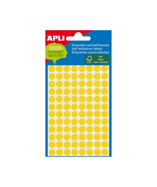 Etiquetas circulares amarelas em formato mini-bag, com Ø 8,0 mm e adesivo permanente.¶Embalagem com 3 folhas (288 etiquetas). ¶Rotulagem rápida e eficaz, sem necessidade de impressora. ¶Etiquetas ideais para escrever com lápis, esferográfica (mesmo de tinta ou gel) ou marcador de secagem rápida. ¶Podem ser escritas manualmente. ¶¶Dimensões: Ø 8,0 mm¶Cor: Amarelo¶Formato: Circular¶Adesivo: Permanente¶Certificações: FSC ¶embalagem: Saco com eurofuro¶¶Sugestões para Utilização:¶Etiquetas para arquivamento¶Etiquetas comerciais¶Etiquetas para uso doméstico¶Etiquetas para escrita manual¶Etiquetas logísticas¶Etiquetas de organização¶Etiquetas de preços¶Etiquetas de produtos¶Etiquetas de destaque¶Etiquetas de sinalização