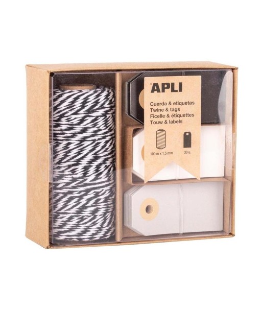 Um conjunto de fio e etiquetas para decorar presentes. ¶Combina a utilidade das etiquetas com a criatividade de um rolo de fio, oferecendo uma experiência de embrulho única.¶Além da utilização em presentes, também é adequado para artes e ofícios, floricultura, álbuns, encadernação de livros, projetos escolares...¶¶O conjunto inclui um rolo de 100 m de fio de algodão preto e branco e 30 etiquetas para pendurar em diferentes cores: preto, branco e cinzento. ¶Pode criar presentes memoráveis e encantadores, desde um embrulho elegante a enfeites criativos.¶¶Tamanho do fio 100 m x 2 mm de espessura.¶Pode ser cortado livremente de acordo com o comprimento desejado.¶¶As etiquetas medem 7 x 3,5 mm e são 10 de cada cor: preto, branco e cinza.