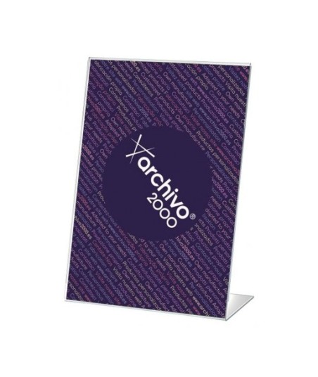 Display de mesa em forma de L File 2000 A3 vertical.¶¶Fabricado em poliestireno ultratransparente de alta qualidade e resistência.¶Visibilidade de um lado.¶O documento desliza lateralmente.¶Base ampla que o torna muito estável.¶¶Medidas exteriores: 120x300x425 mm.¶