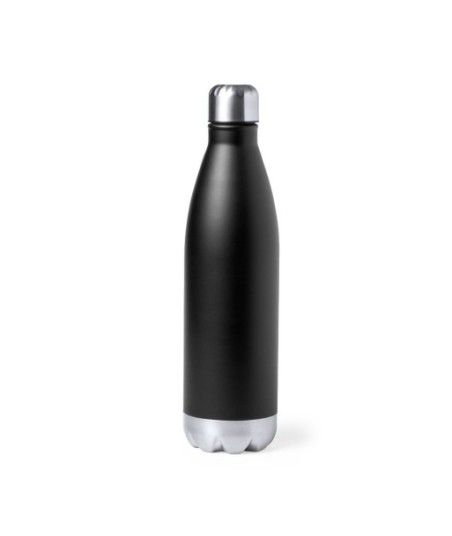 Garrafa térmica de 750 ml de capacidade, fabricada em aço inox de dupla parede. ¶¶Com isolamento de cobre a vácuo, que permite manter o calor e o frio durante mais tempo, chegando até 12 e 48 horas respetivamente. ¶Tampa de rosca, livre de BPA e com base a condizer. ¶¶Cor: Preto¶Medidas: Ø8 x 30,1 cm