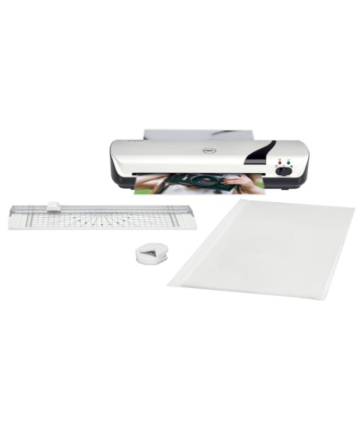 Este conjunto de laminadoras A4 4 em 1 combina as ferramentas perfeitas para a laminação e trabalhos manuais quotidianos - ideal para ambientes domésticos ou educativos. ¶Adequado para fotos.¶¶O conjunto inclui uma máquina laminadora GBC Inspire+ A4 leve e compacta, 1x arredondador de cantos para aparar arestas, 1x cisalha para cortar documentos no tamanho desejado e um pacote inicial de 5x bolsas de laminação A4 (2 x 75 microns). ¶¶A laminadora de papel Inspire+ é simples de utilizar através de um único interrutor e tem um tempo de aquecimento rápido de 4 minutos. ¶Lamina desde cartões de identificação até ao tamanho A4.¶Pode laminar até 2 sacos de 125 mícrons para dar aos seus documentos um acabamento profissional e perfeito, sempre. ¶Este laminador GBC também possui um modo de laminação a frio para os seus materiais sensíveis ao calor. ¶¶Seja criativo e astuto num instante - a imaginação é tudo o que precisa!                                         ¶¶Lamina desde cartões de identificação até ao tamanho A4.¶Lamina até 8 bolsas em 10 minutos.¶¶Velocidade de laminação (mm/min): 250¶Tempo aproximado de laminação (A4): 72 segundos (A4 75 microns)¶Largura máx. de laminação (mm): 241¶Espessura máx. de laminação (mm): 0,5¶Espessura máx. da bolsa (microns): 2 x 125 mícrons¶¶Alimentação elétrica: 220/240 V AC¶Consumo de energia (W): 420¶¶Peso: 1,3 Kg¶Dimensões (L x A x P): 350 x 60 x 130 mm¶¶¶