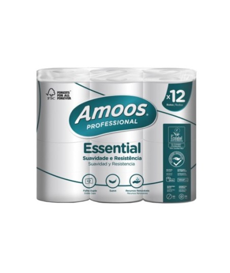 ESSENTIAL SUAVIDADE E CONFORTO. O Amoos Essential une resistência à suavidade.¶¶Feito com recursos renováveis, este papel tem folhas duplas produzidas a partir de fibras virgens: o que oferece, ao mesmo tempo, delicadeza e robustez. Ideal para quer quer oferecer conforto para os clientes e garantir o melhor investimento para o seu negócio. Proveniente de recursos renováveis, como todos os nossos papéis, o Amoos Essential também é feito 100% de celulose, certificado e dermatologicamente testado.¶¶Da matéria-prima à produção o nosso papel percorre um caminho totalmente verde e sustentável, proveniente de florestas geridas de forma responsável (FSC). ¶¶N.º Folhas: 2¶Nº de Rolos: 12¶Metragem: 24m¶Gramagem: 30 gr/m²¶¶Certificados: FSC, EU Ecolabel¶¶Suportes compatíveis: ¶#15640258 - Suporte Papel Higiénico Autoadesivo Cromado Tesa Klaam¶#15640271 - Suporte Papel Higiénico Extra Autoadesivo Cromado Tesa Klaam   ¶#6821068 - Suporte Papel Higiénico Extra Cromado
