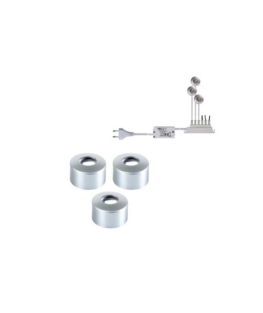 3 luzes LED para gabinete¶Montagem à superfície incluíndo driver LED e conector de distribuição.¶¶Módulo LED com lentes¶Montagem à superfície¶Usar em interiores¶¶Dados relativos à eletricidade:¶Potência do módulo LED: 1 W x 3¶Potência total nominal: 4.6 W¶Driver de tensão nominal: 230 VAC¶Tensão nominal do módulo LED: corrente constante de 350 mA / 24 VDC máx. (incl.)¶Fator de potência: 0.67¶¶Dados técnicos sobre a luz:¶Cor: branco quente¶Temperatura de cor: 3000-3100 K¶Ângulo do feixe de luz: 50°¶Intensidade de luz: - cd¶Fluxo luminoso: 32 lm/módulo¶Índice de rendição de cor: >80¶Tempo de arranque: < 0.5 s¶Tempo de aquecimento (60%): < 1 s¶¶Expectativa de vida:¶Tempo de vida nominal: 15.000 h¶Número de ciclos de comutação: 10.000¶¶Dimensões & peso:¶Dimensões do módulo LED: Ø 31 x 21 mm¶Comprimento de cabo para cada LED: 100 cm¶Diâmetro da furação: 25mm