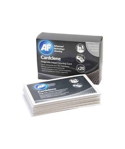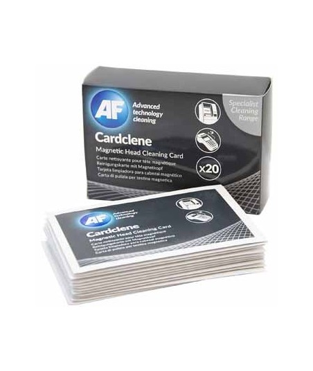 A manuntenção dos leitores de cartões magnéticos nunca foi tão fácil. ¶AF Cardclene é um pack de 20 cartões impregnados com uma solução IPA (Isopropanol) para limpeza de terminais de chip e pin com o objetivo de melhorar a sustentabilidade do equipamento.¶Remove facilmente a poeira e gordura acumulada diariamente.   ¶¶PONTOS CHAVE:¶Fácil de usar¶Manutenção conveniente¶Pode ser usada em entradas de cartões e leitores de banda magnética ¶Ajuda a reduzir a probabilidade de avaria ¶Saqueta embalada ¶¶ADEQUADO PARA:¶Terminais de chip e pins¶Portas com leitores magnéticos de deslize¶Parquímetros, Multibancos ATM
