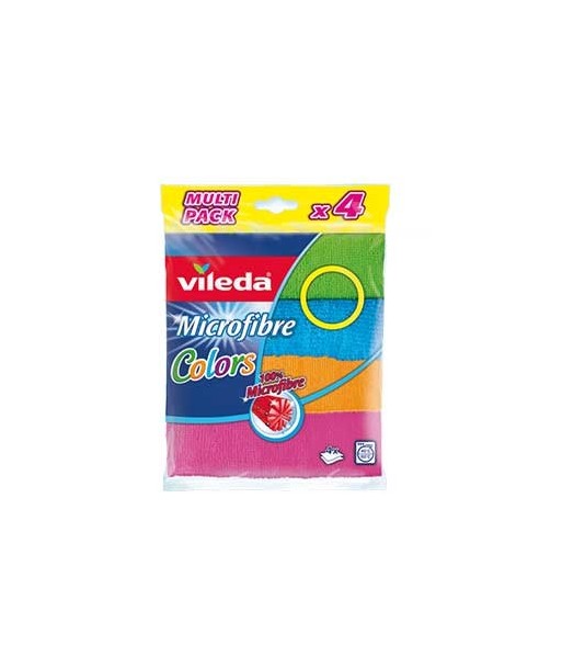O Pano Microfibras Colors é um pano multiusos com grande capacidade de limpeza e absorção. Distingue-se ainda por ter uma grande durabilidade. A embalagem de cores sortidas permite que use cada um dos panos para diferentes propósitos como por exemplo diferentes áreas da casa. ¶¶Excelente poder de limpeza¶A excelente qualidade das Microfibras Vileda permitem limpar até a sujidade mais difícil, sem necessitar do uso de químicos.¶¶Capacidade de absorção¶Esta capacidade de absorção do pano Colors só é possível, graças às fibras ultrafinas de alta qualidade Vileda que lhe conferem uma capacidade extra de absorção.¶¶Multiusos¶O pano Colors é ideal para limpar diferentes superfícies, como o mármore, madeira, cerâmica, Vidros, entre outros e diferentes propósitos, como líquidos, gorduras, pó, etc.). É ideal não apenas para a limpeza do lar, mas também da sua viaura.¶¶Medidas dos diferentes panos: 30 x 30 cm. ¶Cor: Verde, Azul, Laranja e Rosa.¶Pode ser lavado à mão ou na máquina até 60ºC com outros produtos de cores similares. ¶¶Não utilizar amaciador ou lixívia. ¶Não passar a ferro um pano Microfibras e não o deixar em superfícies quentes.