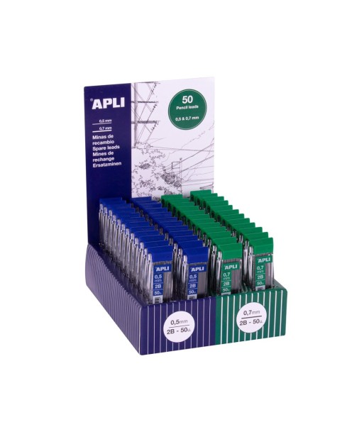 Minas Grafite 0,5mm+0,7mm 2B Apli Expositor 48 Tubos c/50un