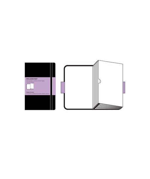 Portfólio de bolso MOLESKINE para guardar bilhetes, documentos e memórias.¶¶6 Bolsas de cartão e tecido¶Fecho Elástico¶Dimensões: 9 x 14cm