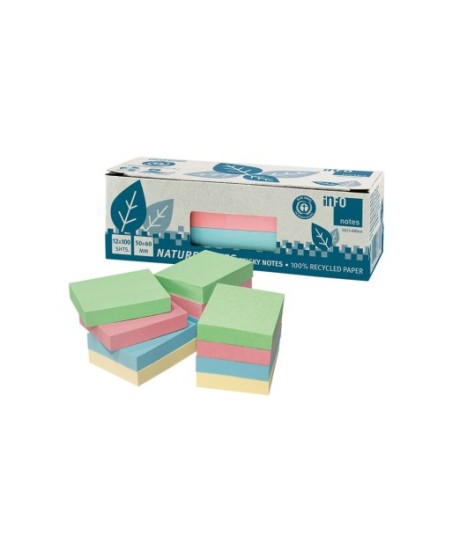 Produtos atrativos e amigos do ambiente com uma excelente funcionalidade.¶Todos os produtos Nature notes são feitos de papel 100% reciclado. ¶¶O sortido de notas Nature é composto por notas autocolantes e marcadores de páginas em cores pastel suaves - embalados de forma atrativa em material reciclado.¶¶Tamanho da folha: 50 x 40 mm¶100 folhas por bloco¶12 blocos por embalagem¶Cores: Amarelo, Azul, Rosa, Verde ¶¶As notas Nature têm a certificação Blue Angel. ¶O Blue Angel é o mais antigo e um dos mais prestigiados rótulos ecológicos do mundo.