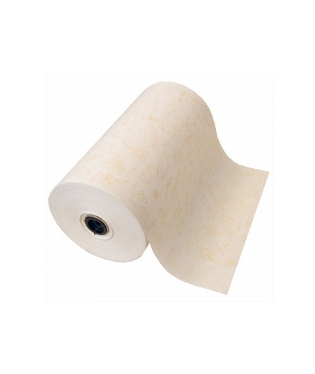 Rolo de papel impermeável para todos os tipos de alimentos com óleos, molhos ou gorduras. Especialmente indicado para delicatessen, frituras e Fast Food.¶¶Material: Anti-gorduras¶Cor: Branco¶Tamanho: 0,34x500m¶¶Gramagem: 32 G/M2¶Faixa de temperatura: -18ºC/+80ºC.¶¶Usos: Biodegradável, Reciclável, Compostável, Resistente a óleos e gordura, Tintas compostáveis¶¶Certificados: Contato alimentar, FSC, Registo sanitário, Produto livre de PFOS - PFOA