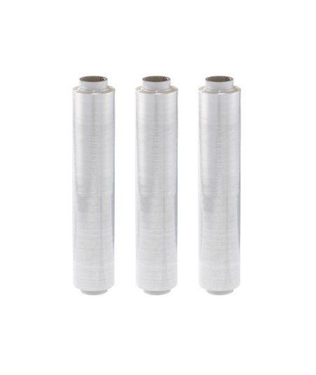 Película aderente adequada para todos os tipos de alimentos. Muito transparente, autoadesiva e válida para congelamento.¶¶Material: PE¶Não contém PVC¶100% Reciclável¶¶Largura: 450mm¶Comprimento: 250m¶Espessura 8my