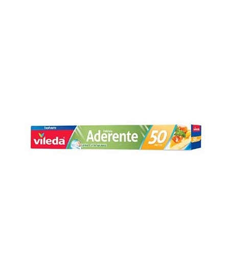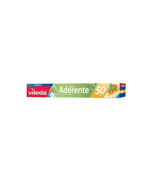 Película Aderente 50 M Vileda Freshmate é fácil de usar pois não se cola sobre si mesma e está sempre pronta a usar.¶¶As propriedades das partículas podem alterar-se quando expostas a condições de armazenamento extremas. Guardar em local seco e a uma temperatura ambiente entre 15º e 20ºC. - Suporta temperaturas até -40ºC¶¶Serra plástica e fixação lateral - A embalagem tem uma serra plástica que facilita o corte da película aderente com sistema de pressionar e fixar para prender o rolo.¶Fácil de utilizar - Com a pelicula aderente Freshmate Vileda será mais fácil e mais rápida a sua tarefa, uma vez que lhe permite ter o início do rolo sempre disponível sem que este se perca, assim como abrir e fechar sem perder a aderência.¶¶Na primeira utilização poderá encontrar facilmente o inicio do rolo graças à saliência na pelicula. Para facilitar as utilizações seguintes poderá colar o início da pelicula aos autocolantes situados nas extremidades da embalagem.¶¶Dimensões: 29cm x 50 m