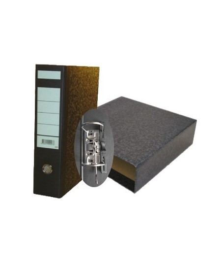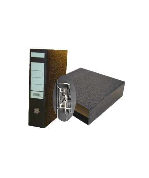 Pasta Arquivo Lombada Larga + Caixa Fixa Marmoreada em Preto. Ideal para guardar todos os documentos importantes.¶¶Cartão forrado com papel kraft marmoreado¶Ferragem de alavanca plástico, óculo em aço cromado¶Com caixa fixa¶Etiqueta impressa¶Com óculo¶Dimensões: 310 x 290 mm¶Lombada de 80mm¶¶