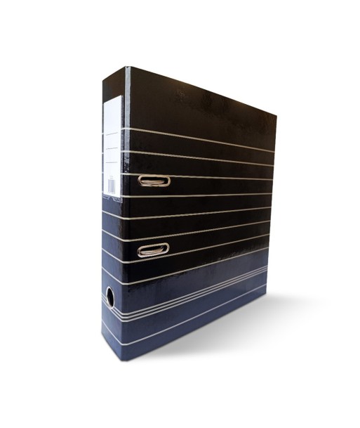 Pasta Arquivo Lombada Larga. Ideal para guardar todos os apontamentos escolares e documentos importantes.¶¶Cartão forrado com papel plastificado.¶Ferragem de alavaca, calcador de plástico.¶Com rado.¶Com óculo.¶Lombada de 80mm. ¶Dimensões: 320x280x80mm¶Cor: Preto