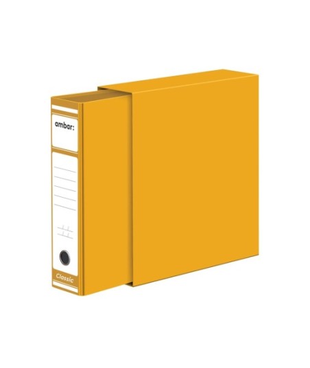 Pasta de Arquivo com Caixa Lombada Larga Comercial Ambar Ideas. Ideal para guardar todos os seus documentos importantes. Tamanho A4¶¶Com Caixa de Arquivo Fixa¶Cartão Forrado¶Etiqueta Impressa¶Ferragem de alavanca, óculo em aço cromado¶Lombada de 80mm¶Dimensões: 287x310x80 mm¶Cor: Amarelo