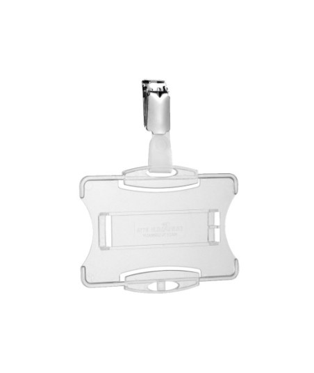 Porta-cartões com design aberto para 1 cartão de identificação/passe de segurança.¶Com fecho de clipe giratório.¶Pode ser combinado com corrente, cordão têxtil ou enrolador de crachá.¶O porta-cartões pode ser usado no formato retrato ou paisagem.¶Dimensões internas: 54 x 87 mm (A x L).¶¶Largura do suporte interno para cartões (mm): 87¶Altura do suporte interno para cartões (mm): 54¶Orientação: Vertical/horizontal¶Tipo de suporte para cartões: Aberto¶Acessório incluído: Clipe giratório¶Tipo de fixação Suporte de segurança e identificação: Perfuração¶Cartão substituível: Sim¶¶Fixação sem níquel: Não¶Largura exterior (mm): 92¶Altura exterior (mm): 70¶Capacidade: 1 cartão(ões)¶Formato de orientação: Vertical / horizontal¶Material principal: Plástico