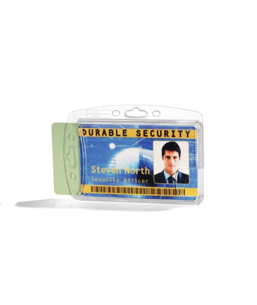 Porta-cartões de identificação em formato fechado para 2 cartões de identificação/cartão de segurança¶¶Material transparente para uma óptima legibilidade e fácil leitura dos códigos de barras ¶Com orifício para o polegar para retirar facilmente o cartão ¶Pode ser combinado com uma corrente, um carreto para cartões ou um cordão têxtil ¶ ¶O porta-cartões pode ser utilizado em formato vertical ou horizontal. ¶ ¶Dimensões internas: 54 x 85 mm (A x L) ¶DImensões externas: 71 x 101 mm (A x L) ¶
