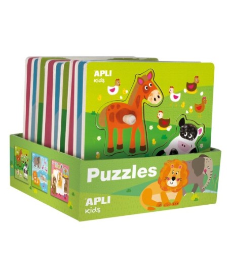 VENDIDO EM CAIXA EXPOSITORA !! Ideal para Pontos de Venda !!¶¶Expositor de quebra-cabeças de madeira entrelaçados com tema infantil de animais. Ilustrado exclusivamente por Liza Lewis. ¶Cada quebra-cabeça é impresso em cores e possui um guia impresso na base para facilitar a vida dos pequenos. ¶O objetivo do jogo é diferenciar, identificar e encaixar cada forma em seu local correspondente. ¶Jogo com alto valor educativo: pegar cada peça exercita o movimento de pinça entre o polegar e o indicador, ajuda a aprender a distinguir formas e a desenvolver a habilidade lógica e a inteligência visuoespacial. ¶¶Cada expositor contém:¶3x Puzzles Animais Domésticos 20x20 cm¶3x Puzzles Animais da Quinta 20x20 cm¶3x Puzzles Animais da Selva 20x20 cm¶¶Medidas Expositor 220x235x225 mm  ¶¶Idade Recomendada: +24 meses