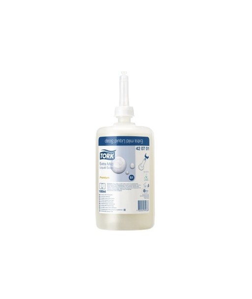 Proporcione um cuidado extra às peles sensíveis com o Tork Sabonete Líquido Extra Suave. Com ingredientes suaves, incolor e sem perfume, este sabonete é muito delicado para a pele. ¶Hipoalergénico certificado pelo ECARF, Centro Europeu da Fundação para a Investigação das Alergias. ¶Indicado para ser utilizado com os Dispensadores de Sabonete Líquido e de Sabonete em Spray Tork, é de fácil utilização e proporciona uma boa higiene das mãos a todos os utilizadores¶¶Hipoalergénico certificado pelo ECARF, Centro Europeu da Fundação para a Investigação das Alergias, perfeito para lavagem das mãos frequente.¶Fórmula dermatologicamente testada, sem perfume nem corantes, com ingredientes nutritivos e reconstituintes comprovadamente suaves para a pele.¶Manutenção garantidamente fácil e recarga intuitiva em menos de 10 segundos¶Higiénico: O frasco vedado com um doseador descartável reduz o risco de contaminação cruzada¶O frasco é reciclável e vai encolhendo à medida que o conteúdo é utilizado, reduzindo o volume de desperdício¶¶Sistema S1 - Liquid soap system¶Aspeto visual Agente branqueador¶Fragrância Sem perfume¶Volume 1000 ml¶Número de doses 1000¶Cor Branco¶¶Dispensadores compatíveis: ¶#682560000 - Saboneteira Recarga TORK S1 Branco 1L        ¶#682560008 - Saboneteira Recarga Plástico TORK S1 Preto 1L  ¶